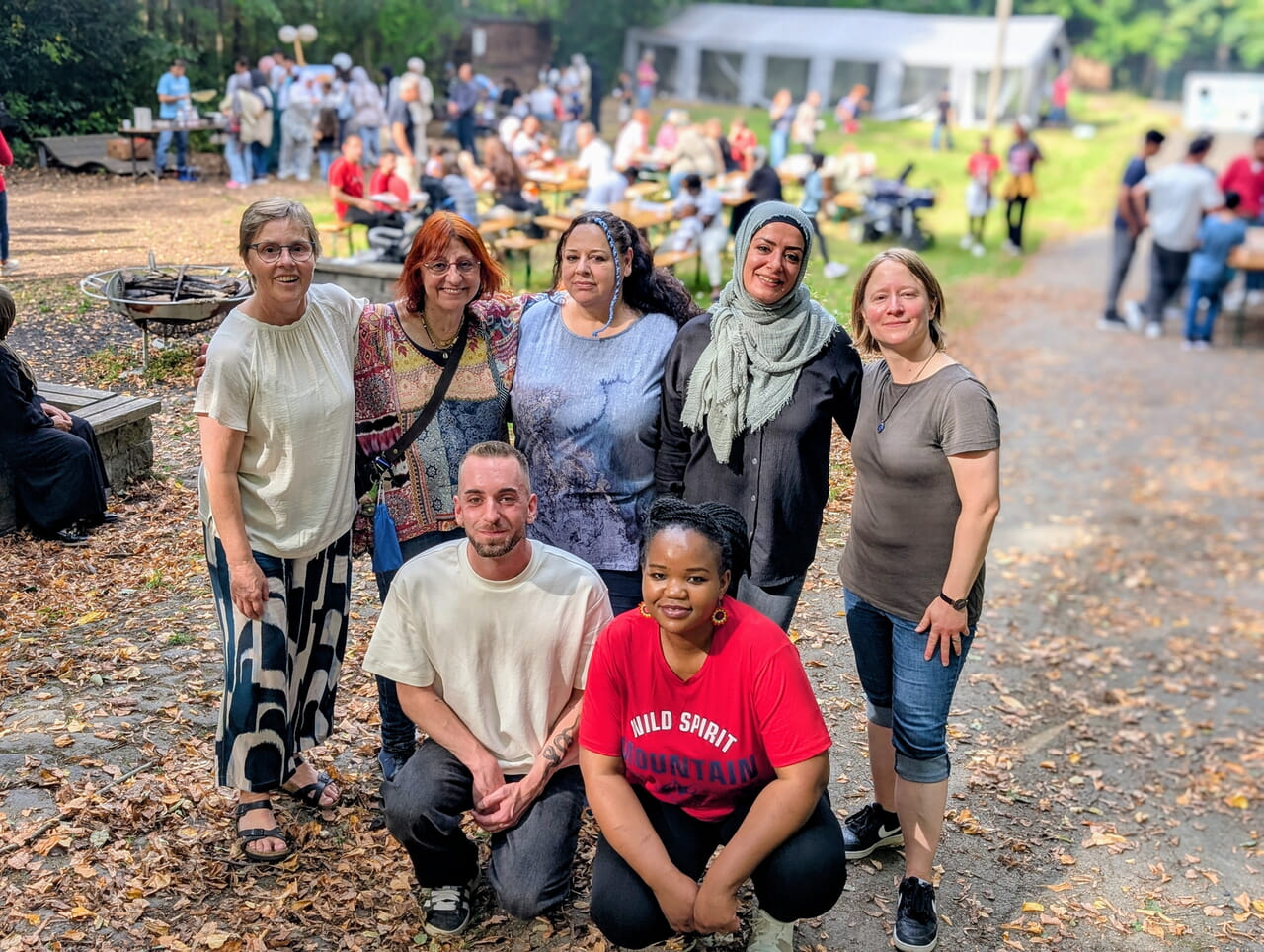 Mit den Ehrenamtlichen und den Familien, die sie betreuen, leisteten sie bei Spiel und Spaß, Essen und Getränken gelebte Willkommenskultur mit dem Fest, das diesmal zufällig auf den Weltkindertag und auch auf den letzten wirklich sommerlichen Tag des Jahres fiel.