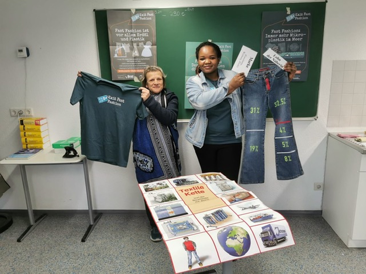 Dazu mussten die Schüler bereits ihren eigenen Kleiderschrank unter die Lupe nehmen und auch mal die Anzahl ihrer Kleidungsstücke aufnehmen.