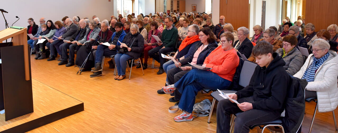 Die Erwartungen bei den vielen Besucherinnen und Besuchern wurden nicht enttäuscht: Zusammen mit Pfarrerin Kathrin Koppe-Bäumer durfte sich Pfarrer Vogt über rund 200 Besucherinnen und Besucher freuen – so viele, dass noch der Eingangsbereich der Lukaskirche bestuhlt werden musste, um dem Andrang gerecht zu werden. „Wir sind heute ziemlich ausverkauft“, kommentierte Vogt zur Begrüßung zufrieden.