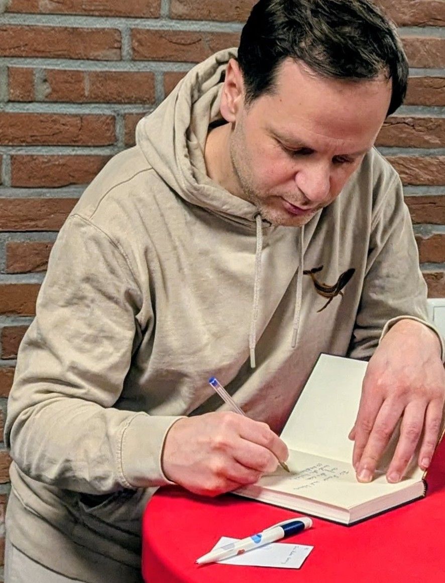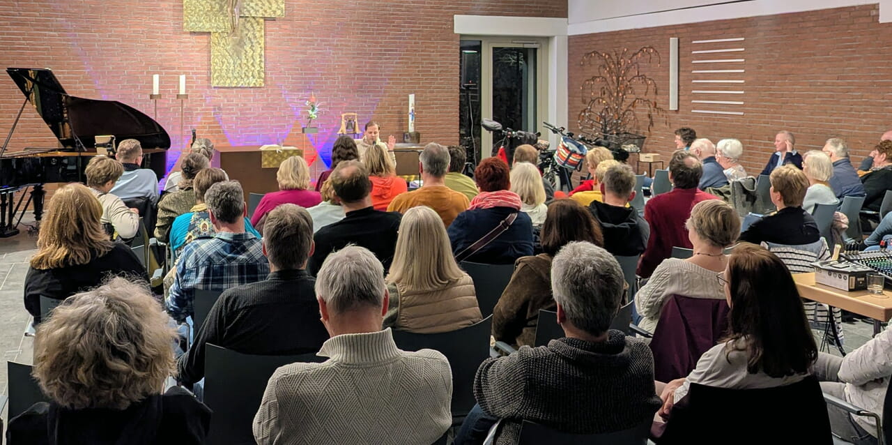 Schon zu Beginn sorgte Pfarrerin Kristina Ziemssen für einen besonderen Moment. Sie sprach von der „Unwahrscheinlichkeit der Wahrscheinlichkeit“, dass ein Autor ausgerechnet an einem Ort eine Lesung hält, von dem er zuvor noch nie gehört hatte. Ihre augenzwinkernde Bedingung: eine echte westfälische La-Ola-Welle. Das Publikum erfüllte sie prompt – und setzte damit den Ton für einen lebendigen Abend.